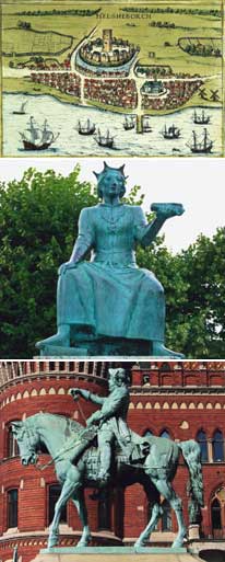 | Navnet på de begge byer menes at stamme fra ordet helsing, som betyder hals og betegner den smalle passage i Øresund imellem Helsingborg og Helsingør. Mange blodige krige har udspillet sig her, og under disse år mistede Danmark Helsingborg seks gange til Sverige og erobrede byen tilbage ligeså mange gange. Det endelige slag stod i 1710, hvor Danmark mistede Helsingborg for sidste gang. Helsingør, som havde kontrollen over Øresundstolden, blev ved med at blomstre indtil 1857, hvor den 400 år gamle toldafgift blev afskaffet. Øresundstolden var en afgift, som alle skibe, der passerede, skulle betale til den danske konge. På nogenlunde samme tid som Øresundstolden forsvandt, begyndte Helsingborg at vokse med nye industrier, havnen blev udbygget, handelen øgede, og indbyggerantallet fordobledes. I dag er både Helsingborg og Helsingør to moderne og blomstrende byer. Derudover er de to byer verdens ældste venskabsbyer. |