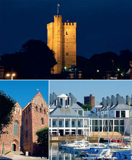 | Kärnan Kärnan har vogtet over Helsingborg i næsten 700 år. Den er blevet et vartegn for byen. En vindeltrappe fører op til toppen, og herfra har man en fantastisk udsigt over byen og Danmark. Kärnan er 34 meter høj og murene er 4,5 meter tykke. Tårnet er det eneste, der er tilbage af det gamle befæstningsanlæg, som har ligget her siden middelalderen. De terrasseformede trapper, der forbinder Kärnan med Stortorget nedenfor, blev indviet i 1903. Rådhuset Helsingborg har et smukt og storslået Rådhus fra 1897. Det er ikke kun udefra rådhuset er imponerende. Også trappehallen og de forskellige mødelokaler er storslåede. Rundvisning for grupper kan bookes via Turistbureauet. ![]() Sancta Maria kirke Opførelsen af denne smukke kirke påbegyndtes i starten af 1300-tallet, og kirken stod færdig godt og vel hundrede år senere. Se den udsøgte altertavle fra 1400-tallet og mindetavlen over den berømte komponist Dietrich Buxtehude, som var organist her på 1600-tallet. Helsingborg har mange andre smukke kirker, f.eks. Gustav Adolfskirken i syd og Raus kirke lige øst for Råå. Dunkers Kulturhus Velkommen til Sydsveriges største kulturhus, som har tiltrukket stor opmærksomhed både i Sverige og udlandet. Den smukke hvide bygning, der er tegnet af den danske arkitekt Kim Utzon, vender sin skulpturelle facade mod Øresund og Danmark. Her vises der temporære udstillinger, by- og kulturhistorie, musik og forskellige arrangementer af høj kvalitet. Ved et besøg bør man ikke gå glip af den fi ne museumsbutik, bistroen og restauranten. Dunkers Kulturhus ligger i Norra Hamnen, som har en spændende beliggenhed med en eksotisk fornemmelse af sydlige breddegrader.nsla av sydliga breddgrader. Visning för grupper kan bokas genom Turistbyrån. |