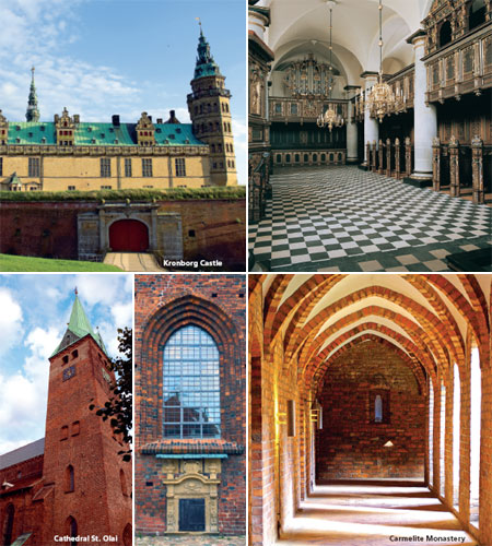 | Kronborg - Hamlets slot Takket være Shakespeares Hamlet er Kronborg en af Danmarks mest kendte bygninger og nu også med på UNESCOS liste over verdens kulturarv. Den, der besøger slottet i dag, kan genfinde meget af den gamle, historiske pragt og storhed. Slottet har Nordens største riddersal, en smuk slotskirke, store bastioner, Rådssalen med de syv kongelige gobeliner og de uhyggelige og mørke fangehuller, kasematterne, hvor den danske nationalhelt Holger Danske hilser de besøgende velkommen. Kronborgs kanonudsigt Fra slottets største tårn har man en fantastisk udsigt over Øresund og Skåne. Man har også mulighed for at kigge nærmere på Kronborgs kanoner, som er de ældste i verden, der stadigvæk er i brug. De bruges blandt andet på dronningens fødselsdag. ![]() Hamlet Sommer Hvert år i august arrangeres Hamlet Sommer på Kronborg. Det er et festspil med danske og internationale opsætninger af Shakespeares klassiske drama om prins Hamlet. Mange store skuespillere har i årenes løb stået på scenen i Kronborgs borggård. Karmeliterklosteret og Sct. Mariæ kirke Klosteret blev grundlagt i 1430 og er et af de smukkeste og mest velbevarede klosteranlæg i Nordeuropa. Her går man igennem klostergange, musiklokaler og refektoriet. I Sct. Mariæ finder man velbevarede vægmalerier og det for nylig renoverede orgel, som den tyske komponist Buxtehude spillede på, da han var organist her på 1660-tallet. Domkirken Sct. Olai Den ældste del af kirken er fra 1200-tallet, men kirken blev ikke færdigbygget før 1480-1559. Barokstilen præger interiøret. Det karakteristiske kirketårn er 68 meter højt. |